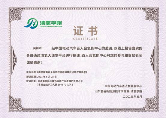 2023年5月25日,taptap点点官方网站教授吴朝玲应中国电动汽车百人会氢能中心的邀请,以线上报告嘉宾的身份通过清氢大课堂平台进行授课。