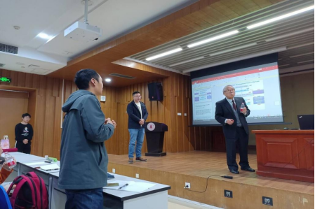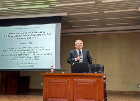 在杨磊副教授隆重介绍井上明久教授后,讲座正式开始。井上明久教授首先表示自己已是第七次来到成都,很荣幸受邀来到taptap点点官方网站进行学术分享,并高度赞扬了学校的办学条件和教育水平。随后,井上明久教授就非晶合金和软磁性材料的研究情况及其工业化进行了详细介绍,讲座内容与前沿领域紧密结合,与一线生产紧密接轨,具有非常强的指导意义。