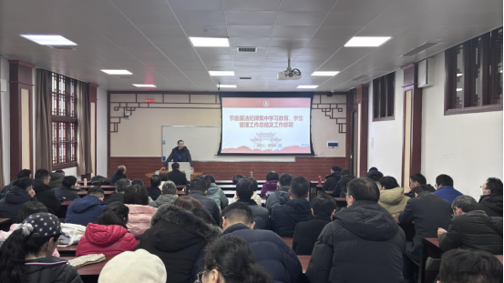 张晓满副书记作节前廉洁纪律集中学习教育、学生管理工作总结及工作部署。介绍了学院近期的学生工作情况,从规矩意识、风险控制、师德师风等方面作了纪律提醒。