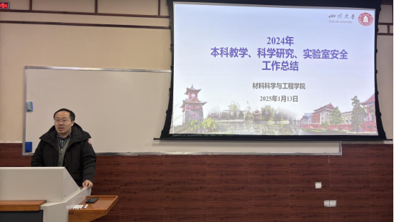 王泽高副院长作2024年本科教学、科学研究、实验室安全工作总结,对2025年重点工作任务进行部署。