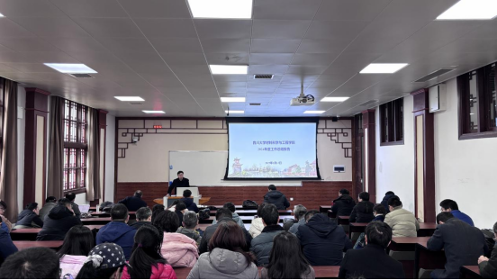 刘颖院长作学院2024年度工作总结报告。他着重从党建与事业结合发展、“1+5”“1+3”文件落实情况、学院特色亮点等方面回顾了学院2024年工作,并就不足之处提出了改进措施。他强调,学院全体教职工将持续加强理论学习,坚持党管人才,深化人才培养,强化顶层设计和多元评价,保持奋斗精神,不忘初心,砥砺奋进,为学院高质量发展贡献智慧与力量。