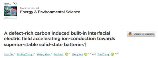 该成果发表以“A defect-rich Carbon Induced Built-in Interfacial Electric Field Accelerating Ion-conduction towards Superior-stable Solid-state Batteries”为题,发表在著名学术期刊Energy & Environmental Science上(中科院一区,川大A-,影响因子32.4)。taptap点点官方网站为该论文第一通讯单位,第一作者是杜立宇。