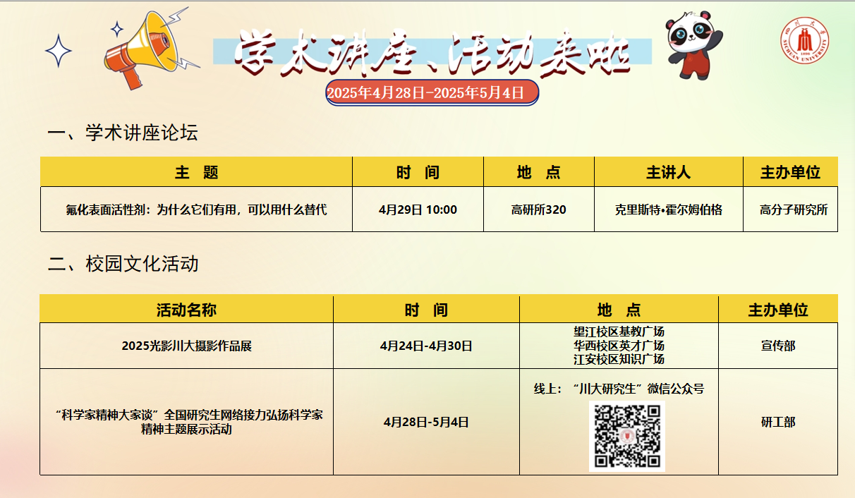 学术讲座论坛及校园文化活动预告(2025年4月28日-2025年5月4日)