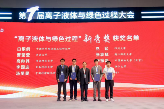 据悉,第七届离子液体与绿色过程大会共评选出青年创新奖5名,新秀奖9名,其中新秀奖主要奖励在离子液体研究方面具有突出成果的35岁以下青年科研工作者。