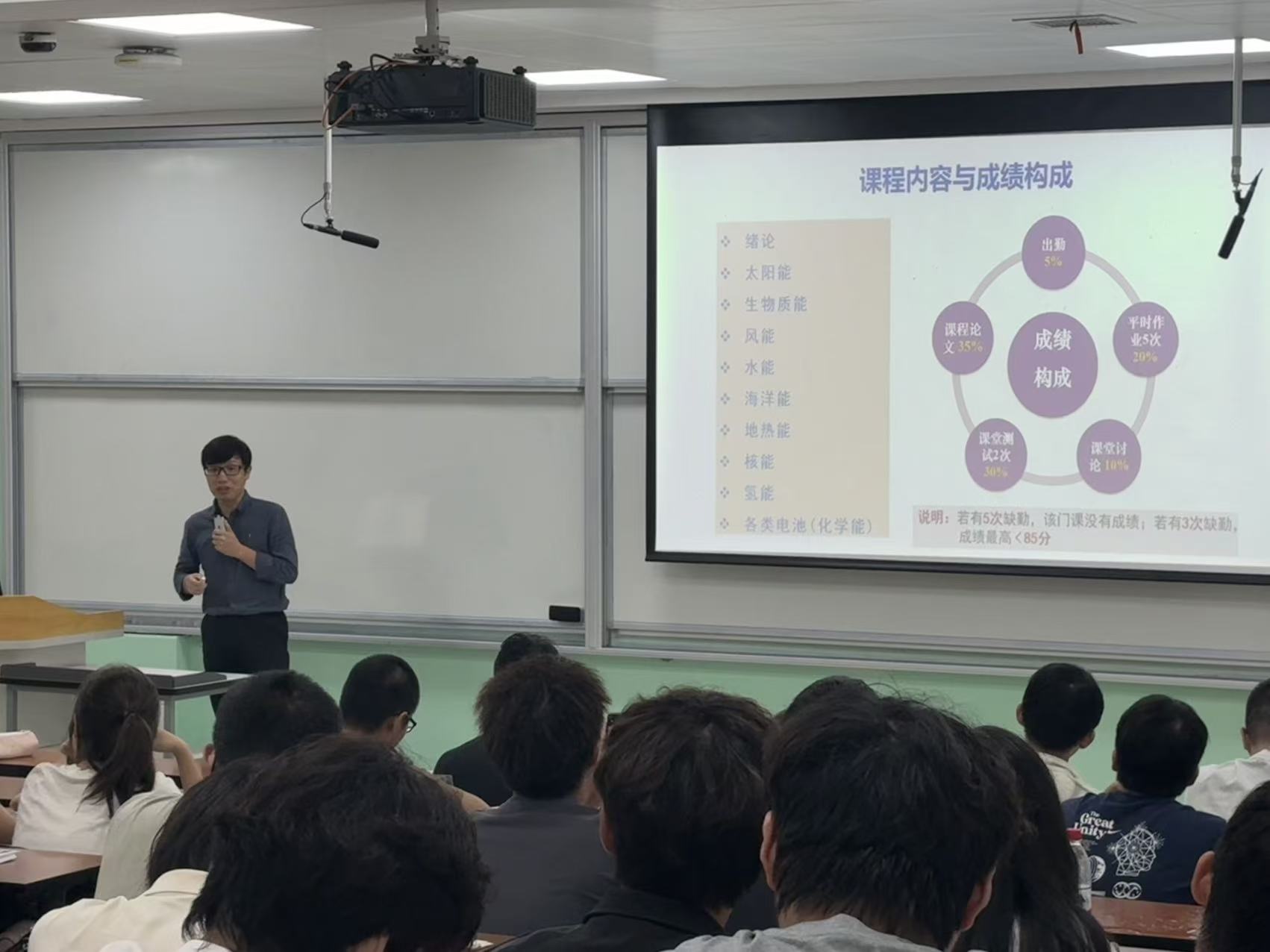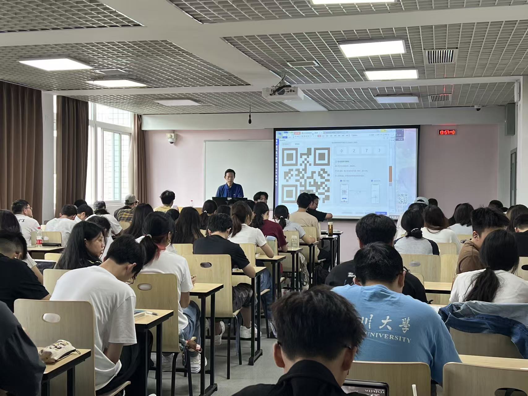 全体教师严格执行“提前15分钟到岗”要求,进行课前调试设备、梳理教案,了解选课学生概况,确保课堂“零延误”。授课教师仪表规范、备课充分;授课内容详实,注重课程思政融入;教师熟练使用智慧教室扫码签到、随机点名、弹幕提问等功能,公开联系方式并建立课程群,延伸课后辅导,强化师生互动。