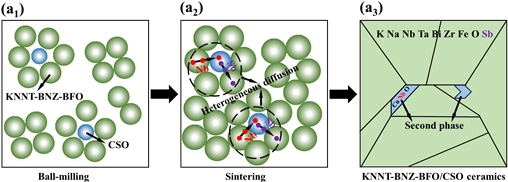 图1. KNN/xCSO复合陶瓷中异质扩散的示意图