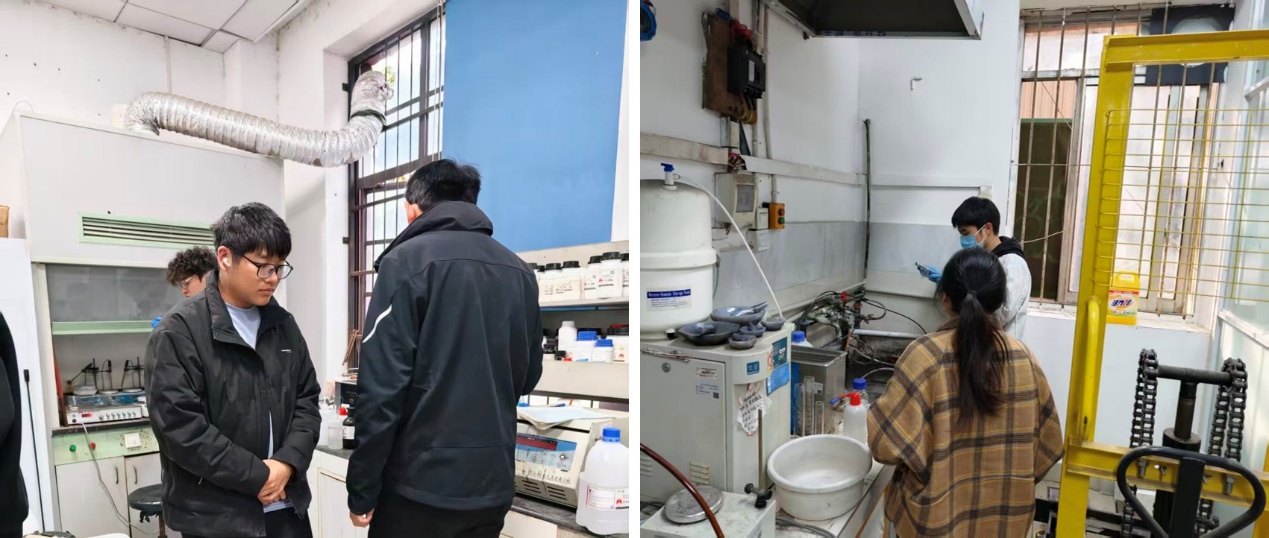 本次检查聚焦材料学科实验安全关键风险点,重点核查五大方面:一是危险化学品管理,严格检查试剂分类存放、标签规范、台账记录、双人双锁制度落实及危废分类暂存与处置流程;二是设备与用气安全,核验高温高压等特种设备运行状态,以及高压气瓶固定、管路气密性与防倾倒措施;三是水电消防安全,排查线路规范、大功率设备用电、私拉乱接、消防器材有效性与应急通道畅通情况;四是环境与防护管理,检查实验台面整洁、物品定置摆放、防护装备配备与安全标识张贴;五是安全责任落实,查看实验室安全制度上墙、操作规程公示、日常巡查记录与安全教育开展情况。