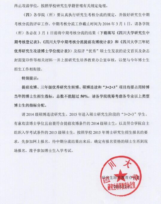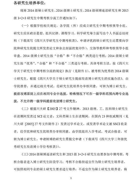 关于2014级硕博研究士生中期考核分流的通知