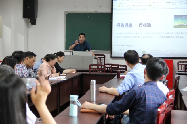 接下来,盛勇、曾广根、蒲曦鸣三位班主任分享了他们的班主任日常工作、以及与同学们交流的经验和体会。盛勇老师是2017级金材一班的班主任,他经常到新校区与同学们交流谈心,及时了解同学们学习上和生活上遇到的问题,并及时解答和解决。他班上36位同学来自不同的地方,性格特点、生活方式、学习习惯迥异,为了更全面深入的了解每一位同学,盛老师在入学之初根据教学满意度、未来规划、学习习惯、精力分配、消费观及运动频率等多方面,设计了一份由50个题目组成的调查问卷。这份问卷对熟悉学生情况,了解学生对教学和管理方面的意见和建议,并促进改进有积极的推进作用。