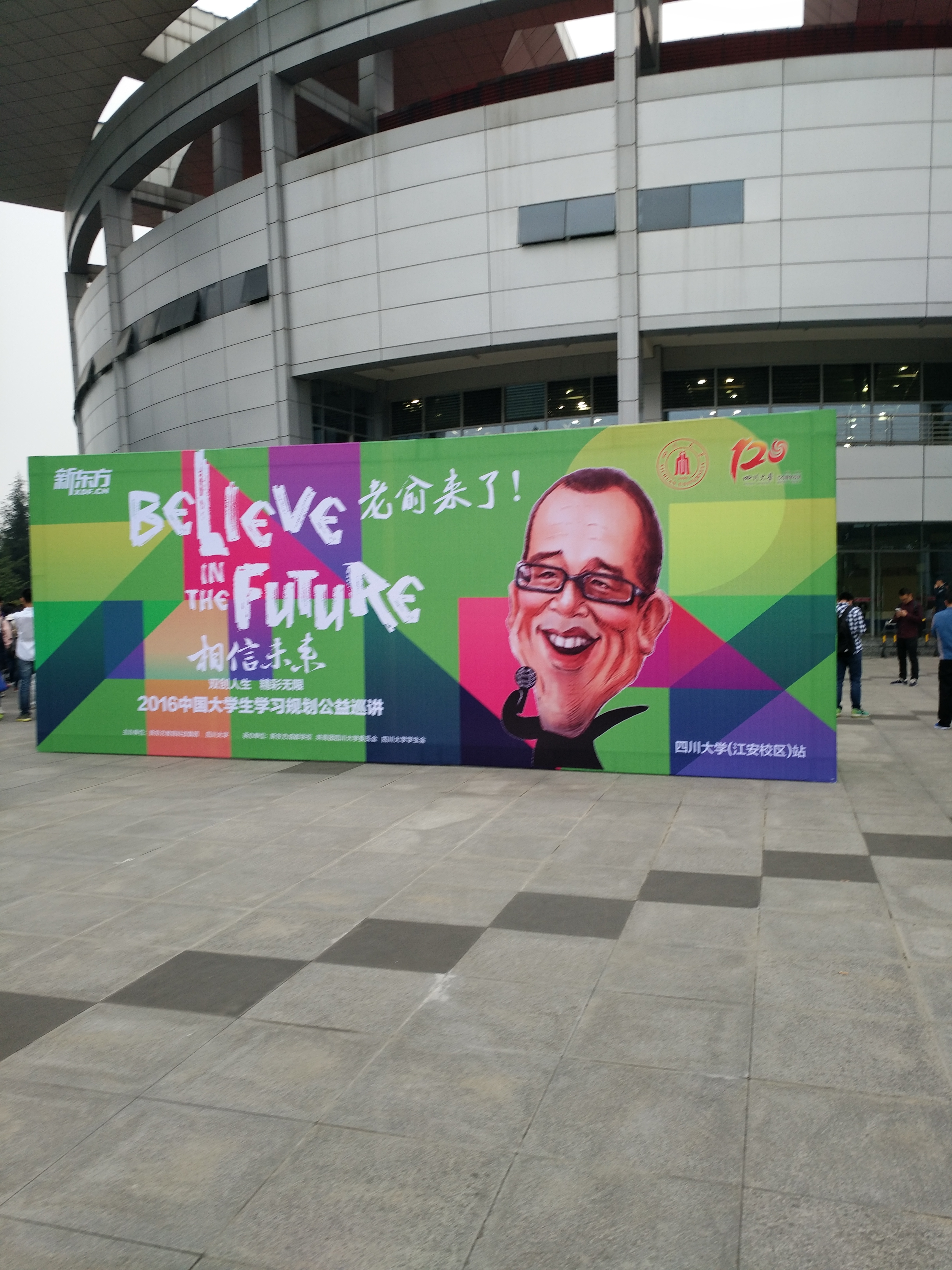 2016年10月14日19时,新东方科技教育集团董事长兼总裁俞敏洪老师的“相信未来—双创人生,精彩无限”公益巡讲在taptap点点官方网站江安校区体育馆顺利举行。本次演讲活动由新东方教育科技集团与taptap点点官方网站联合主办,并由新东方成都学校,共青团taptap点点官方网站委员会和taptap点点官方网站学生会共同承办。