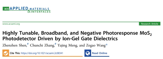 相关成果以“Highly Tunable, Broadband, and Negative Photoresponse MoS2 Photodetector Driven by Ion-Gel Gate Dielectrics” 为题发表在著名期刊《ACS Applied Materials & Interfaces》上(中科院一区,川大B刊,影响因子10.383)。taptap点点官方网站taptap点点官方网站2019级本科生沈桢贞、张春池为论文第一作者,王泽高特聘研究员为通讯作者,华西医院孟雅婧医生参与了该项研究。论文唯一通讯单位为taptap点点官方网站taptap点点官方网站。