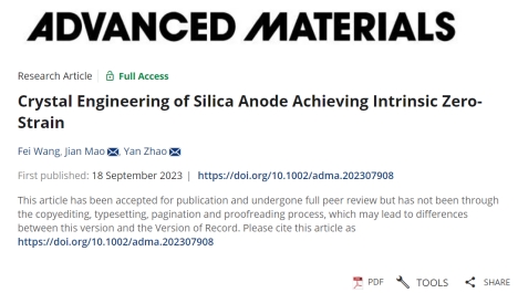 近日,taptap点点官网毛健教授团队在材料学顶级期刊Advanced Materials发表题为:Crystal Engineering of Silica Anode Achieving Intrinsic Zero-Strain的研究。第一作者为副研究员(专职科研)王飞,该文通讯作者为taptap点点官方网站的毛健教授和赵焱教授,第一作者单位为taptap点点官方网站。该研究提出了一种新型的零应变硅基负极材料结构设计方式,对于硅基负极材料的科学研究和商业化都具有重要意义。