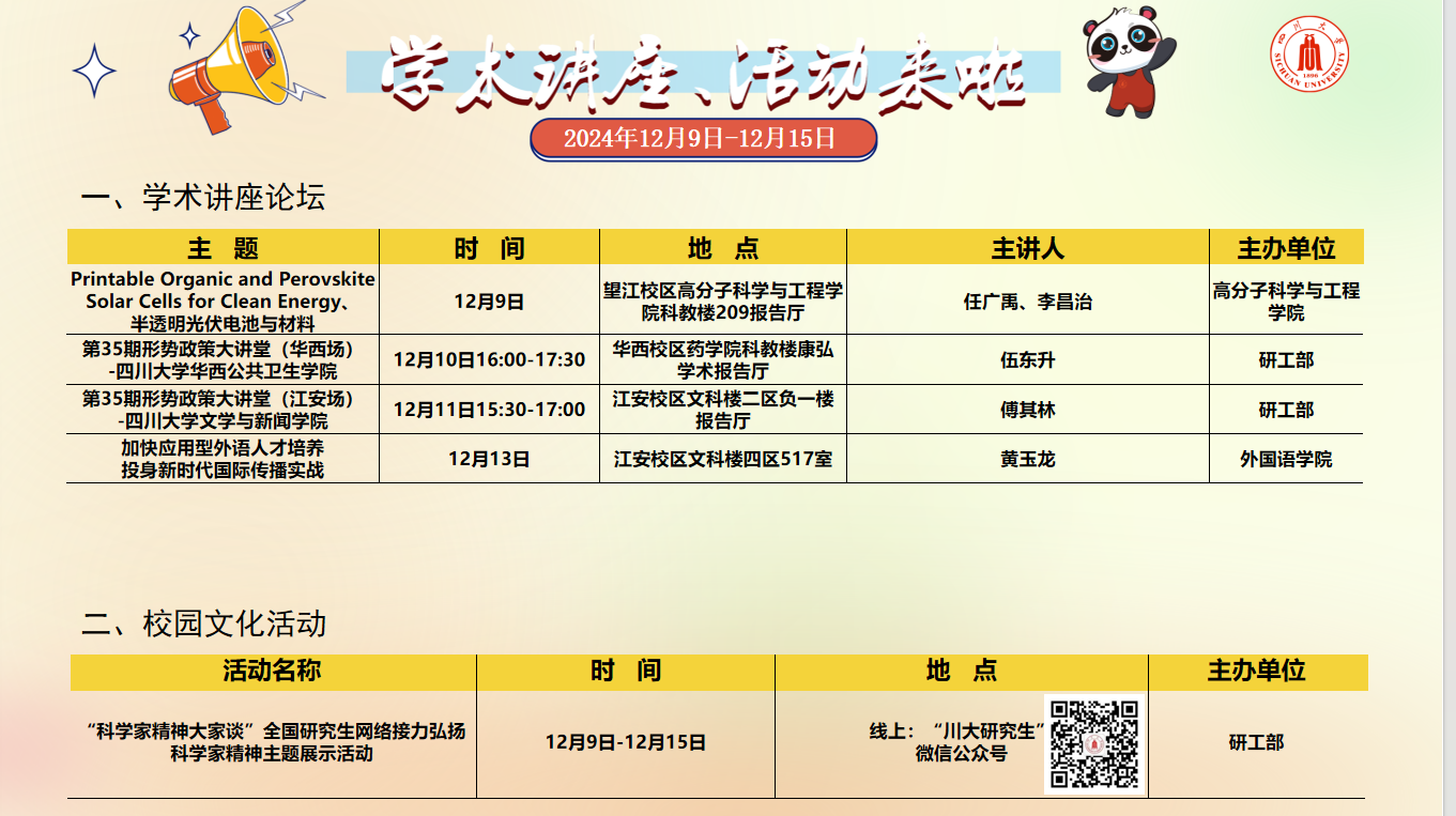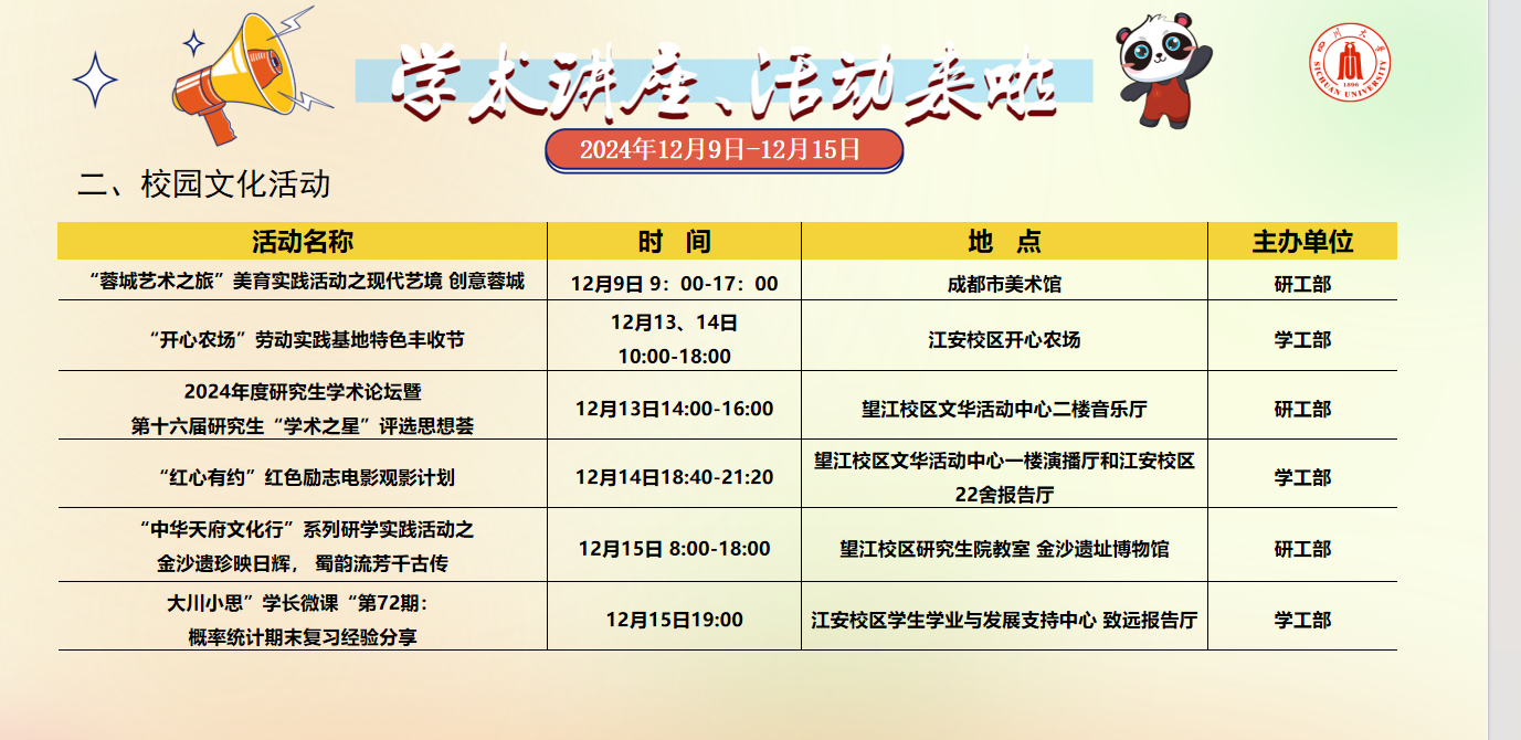 学术讲座及校园活动文化预告(12月9日-12月15日)