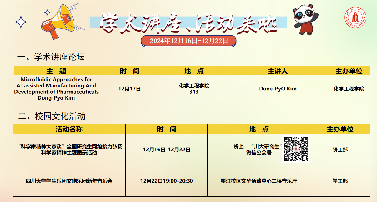学术讲座及校园活动文化预告(12月16日-12月22日)