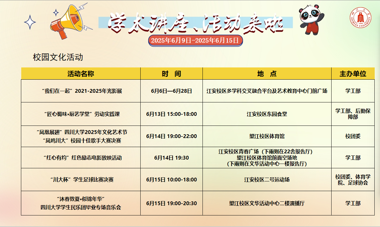 校园文化活动预告(2025年6月9日-2025年6月15日)