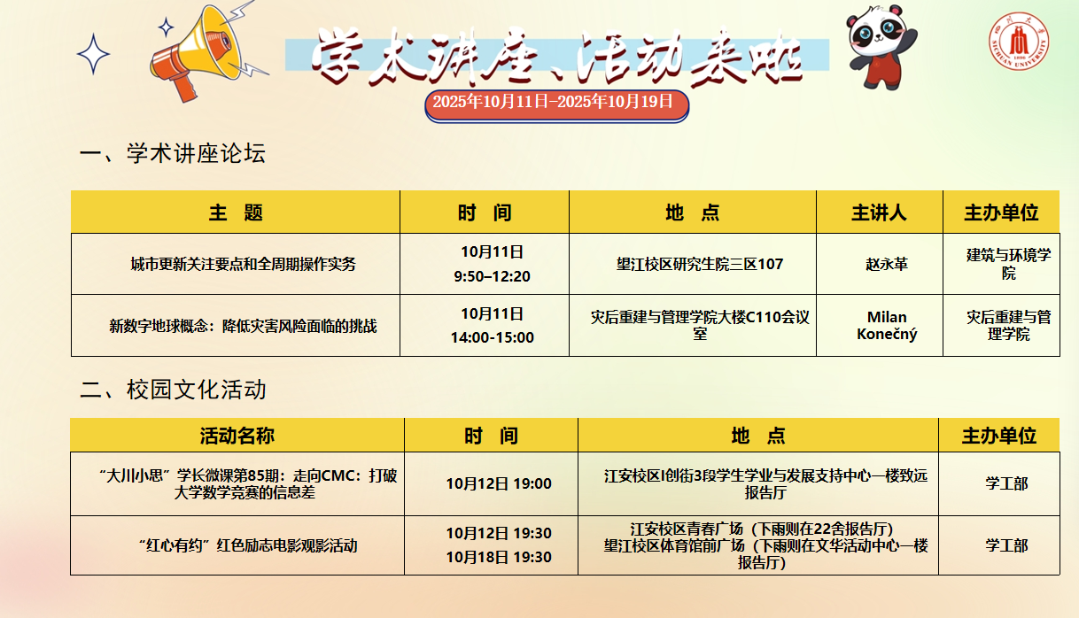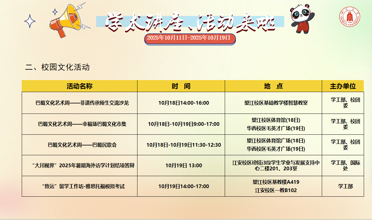 校园文化活动预告(2025年10月11日-2025年10月19日)