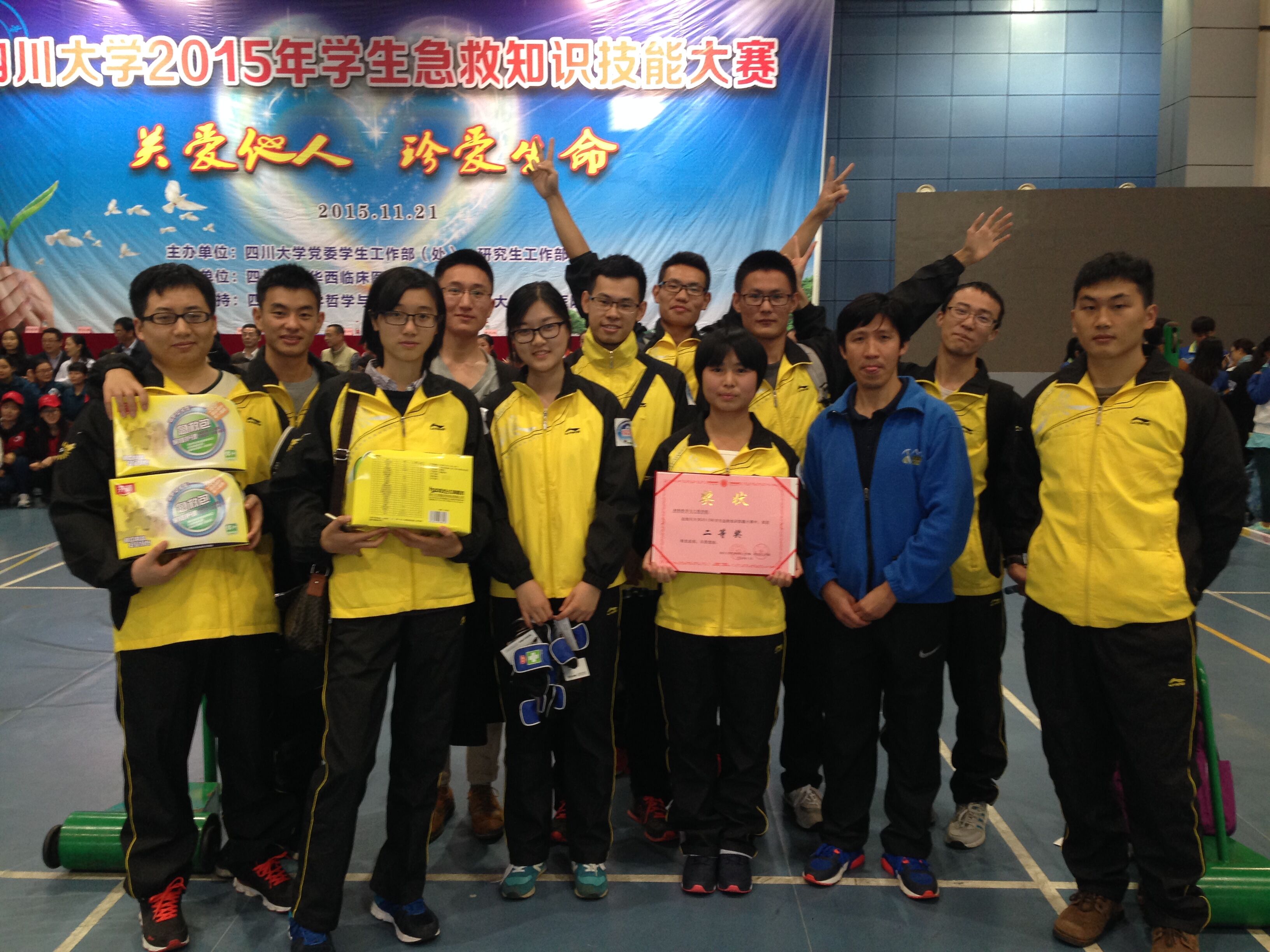 11月21日下午,taptap点点官方网站2015年急救知识技能大赛在江安校区体育馆举行,taptap点点官方网站党委副书记唐世红老师和taptap点点官方网站2015级辅导员文铭老师携材料学子积极参与此次比赛,最终在比赛中以总分144分的好成绩取得全校第三名并荣获二等奖。