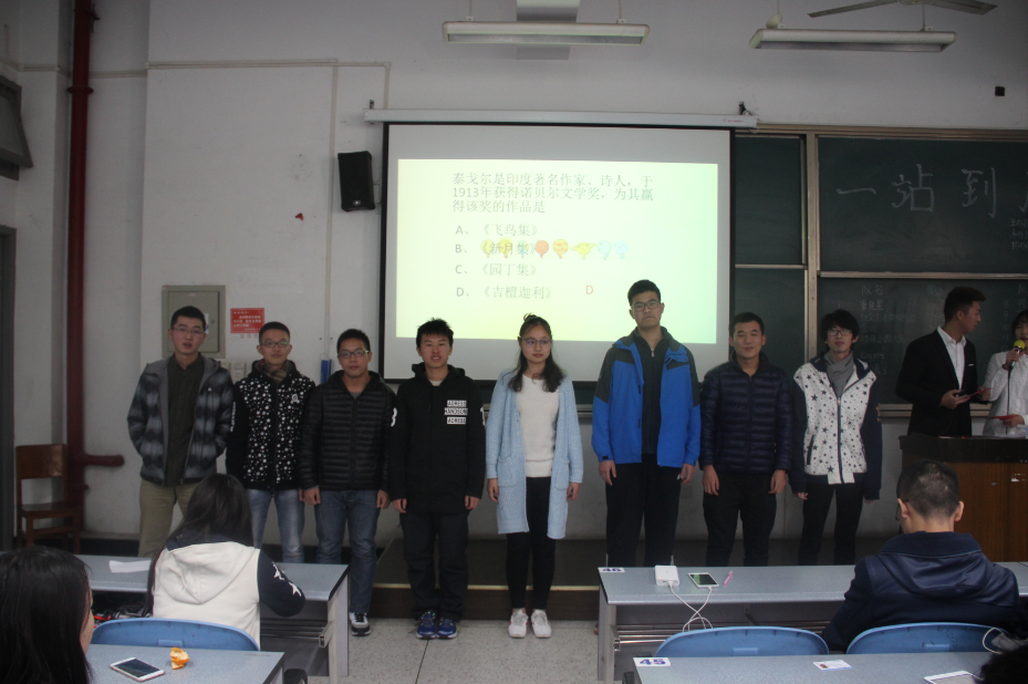 2016年11月27日下午两点三十分,由taptap点点官方网站团委学生会主办的“一站到底”知识竞答比赛在综合楼C座303教室准时开始。