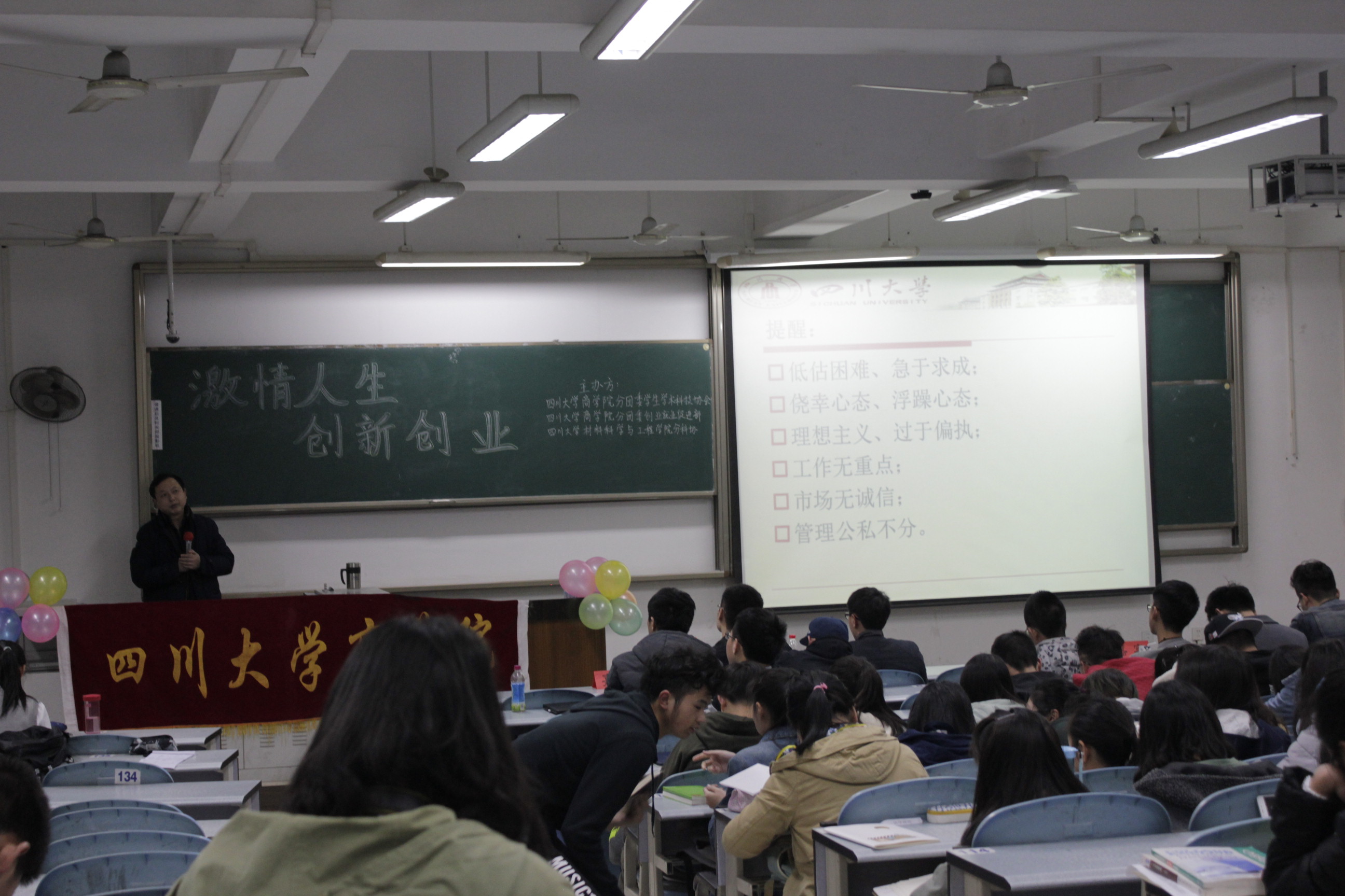 2017年3月24日晚7点,由taptap点点官方网站分团委学生学术科技协会与商学院分团委学生学术科技协会、商学院分团委创业就业促进部三个部门联合举办的taptap点点官方网站商学院“双创”系列讲座之“激情人生,创新创业”在江安校区综合楼C座207教室顺利举行。与会嘉宾有:商学院副院长米德超教授、商学院团委老师兼2016级辅导员唐建民老师和商学院2014级团委学生会主席李思涵同学。