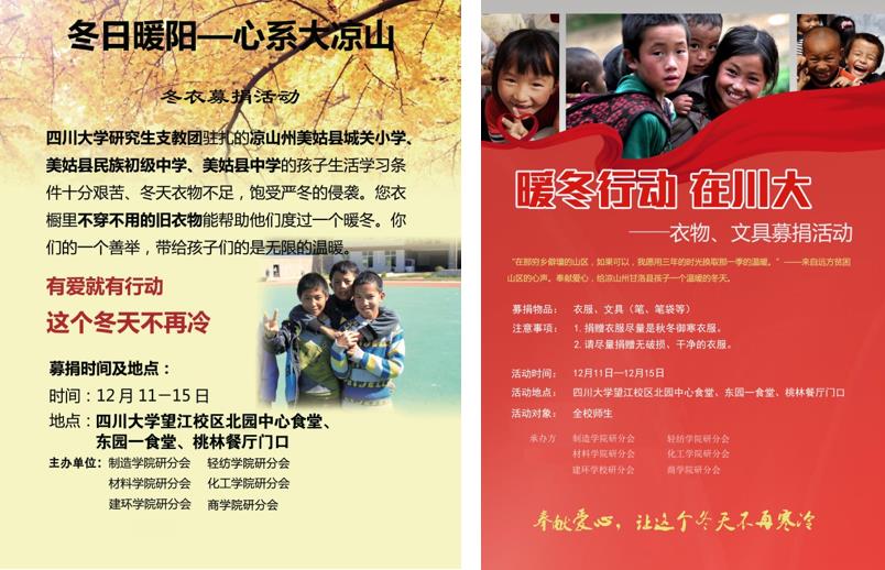 “心系大凉山-冬日募捐”活动中负责引导捐赠冬衣的同学进行登记,对募捐到的衣物进行整理,无需培训,工作简单轻松但十分有意义。
