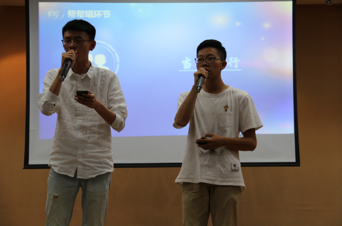 在第一轮表演结束后,评委们对选手们的表现进行了犀利的点评,评委们的点评让选手们看到了自己的不足,也在接下来的一轮比赛中做好更充足的准备。评委们点评后,同学们玩起了“听歌识曲”的游戏,去台上参与的同学认真的想听出答案,下面的同学们也不甘示弱,不断猜出答案。游戏结束后,一共有三位同学进行最后的角逐。在帮帮唱环节中,选手们与自己帮唱嘉宾的默契配合让大家又欣赏到了更加好听的歌曲。