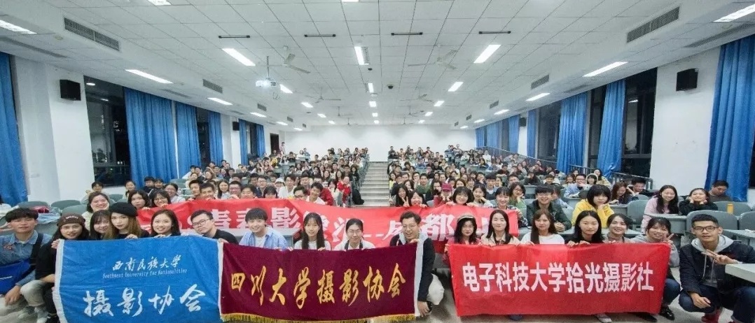 晚七点,天气已开始转凉,但同学们的热情并没有受到丝毫影响,近300人的教室座无虚席,甚至部分同学只能站着参加活动。活动开始后,摄影师由浅及深,从构图到修图到模特的引导,给大家普及了很多摄影的小技巧及相关应用知识。来自川大的同学们非常积极,在摄影师授课和交流互动环节中均表现出了极高的素质。活动于晚九点如期圆满结束,通过本次活动,同学们收获到了许多实用的的知识和技巧,也希望日后能够举办更多类似的活动,为同学们的课余生活加一些香料!