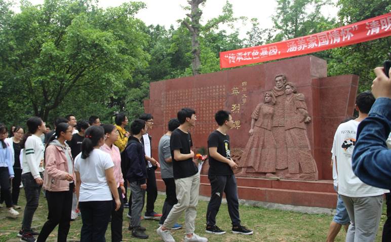 2019年4月19日下午5时30分,taptap点点官方网站2017级全体团员在taptap点点官方网站江安校区不高山烈士碑开展了名为“青春心向党,建功新时代”的主题团日,致以纪念“五四”运动100周年。