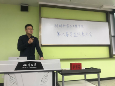 大会首先进行了学生会主席换届选举工作。四位候选人以抽签顺序分别进行竞选发言。在余鹏飞老师代表换届工作小组宣读候选人推荐信后,现场学代表依次投出自己庄重的一票。根据学代会现场投票结果,选举产生新一任学生会主席王晶(2017级),选举产生学生会副主席王一涵(2018级)、肖新越(2018级)。