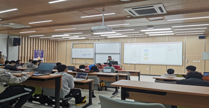 接着,进行了“你画我猜”游戏环节。之后由张鸿杰副书记进行PPT制作的讲解,涉及幻灯片的母版制作、动画的制作、字体及图片的正确格式。张鸿杰同学通过现场操作实践,给同学们详细的讲解了如何快速高效的做好一份PPT。