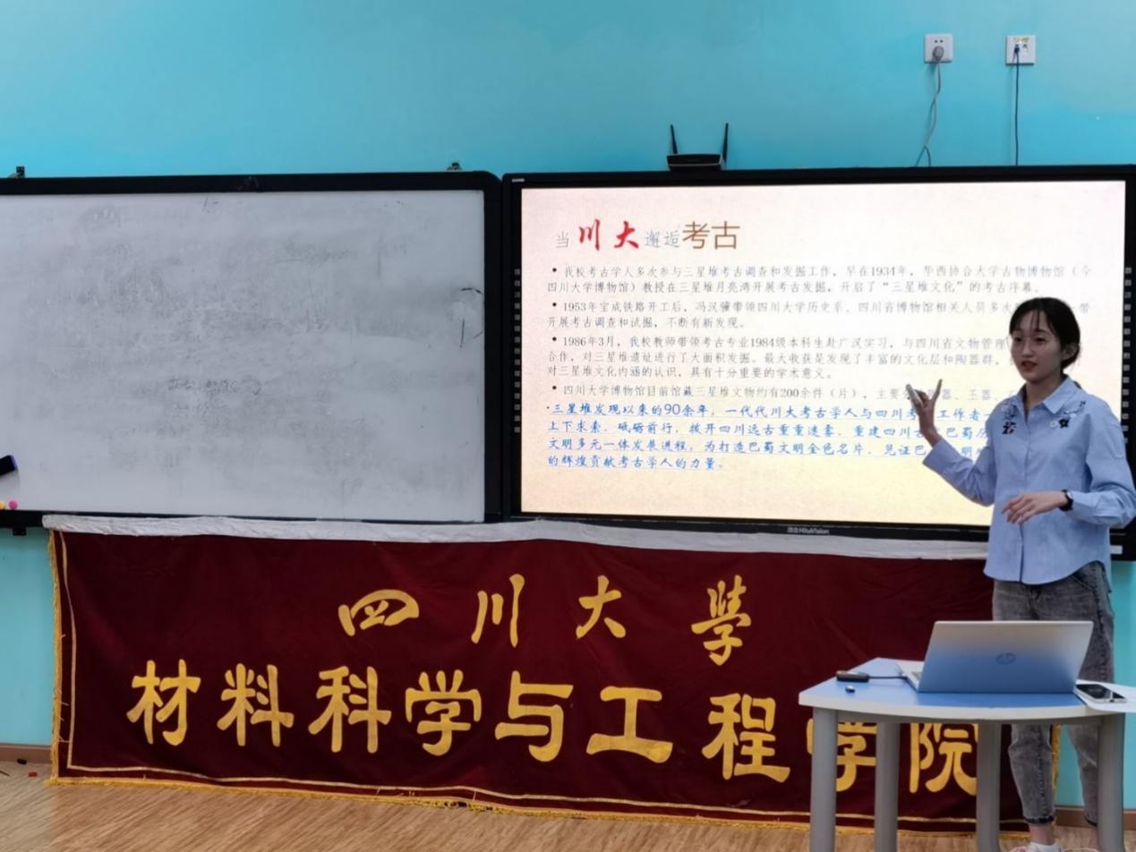 首先是对三星堆遗址重大考古发现的介绍。活动通过播放相关视频,对黄金面具、青铜古树等文物的介绍,揭开了古蜀文话的神秘面纱。三星堆重大考古发现再次向世界展示了中华传统文化所蕴藏的丰富宝藏,以及坚定了中华民族的文化自信。同时活动还介绍了川大在三星堆遗址发掘工作中所做出的突出贡献。