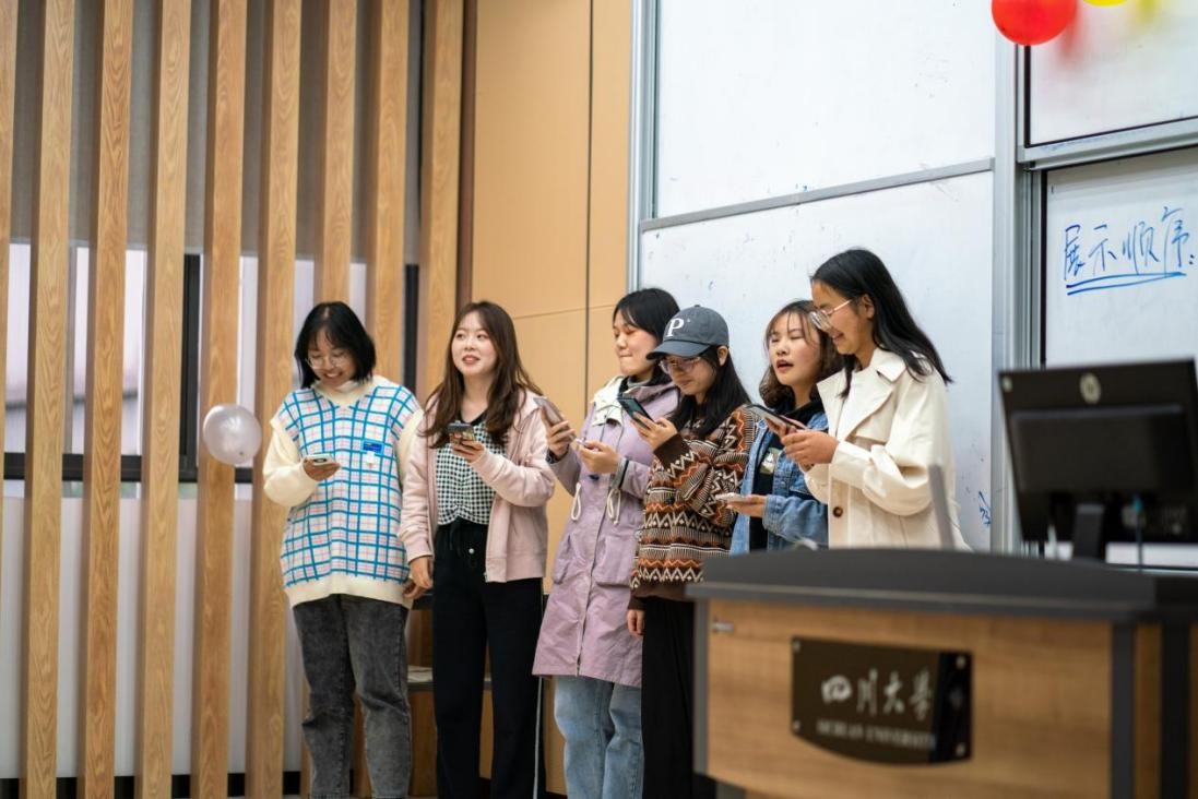 接下来,依次是每个寝室的综合展示。从寝室的文化内涵、设计理念、规划布置等方面都让观众们看到了同学们倾心设计自己的小家,充分体现了川大学子对自己寝室浓厚的爱意。此外,每个寝室还进行了才艺表演。无论是从动人旋律还是活跃的舞蹈都可以看出21级新生们饱满的生活热情和生活情趣。室友们默契的配合,相视一笑,亲密和睦的场景让所有人沉浸其中,欢乐无比。