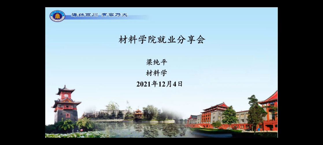 首先由梁纯平学长带来分享。梁纯平博士目前担任taptap点点官方网站兼职辅导员,本科望江党支部书记,主要从事稀土LED光学材料的性质研究,本、硕、博阶段均研学于材料学专业,在材料制备、性能研究领域积累了较多的经验和理论知识。截止目前发表多篇SCI论文;2019年曾前往英国牛津大学参加学术会议。在活动中,梁纯平博士就材料学科专业相关知识和材料学未来就业前景两个方面进行分享,针对结构材料和新能源材料两个大类展开研究内容及就业态势的介绍,还对材料本科生、硕士生、博士生近年的工作薪资待遇做出简要对比说明。