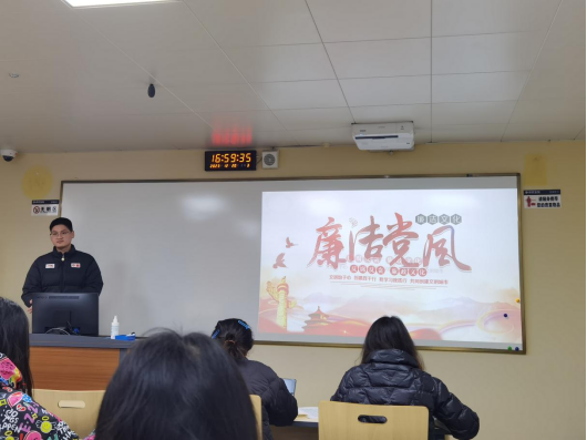 2023年12月20日16: 45,由中共taptap点点官方网站2023级硕士党支部举办的以“廉洁党风,廉政文化”为主题的组织生活在研究生院三区304教室举行。由中共taptap点点官方网站2023级硕士党支部支部书记韩纪梅同志担任主持人,党员代表贾淯栋同志作专题发言。