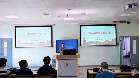 叶金文副院长从本科教育教学审核评估和研究生招生、培养模式的改革两方面对2024年教学工作进行汇报。他指出,以新一轮审核评估为契机,不断深化本科教育教学改革,加快实现高等教育高质量内涵式发展,为推进教育强国战略提供有力支撑,持续优化研究生招生培养模式改革,着力构建研究生培养质量提升长效机制,努力推动研究生教育工作再提层次、再上水平。